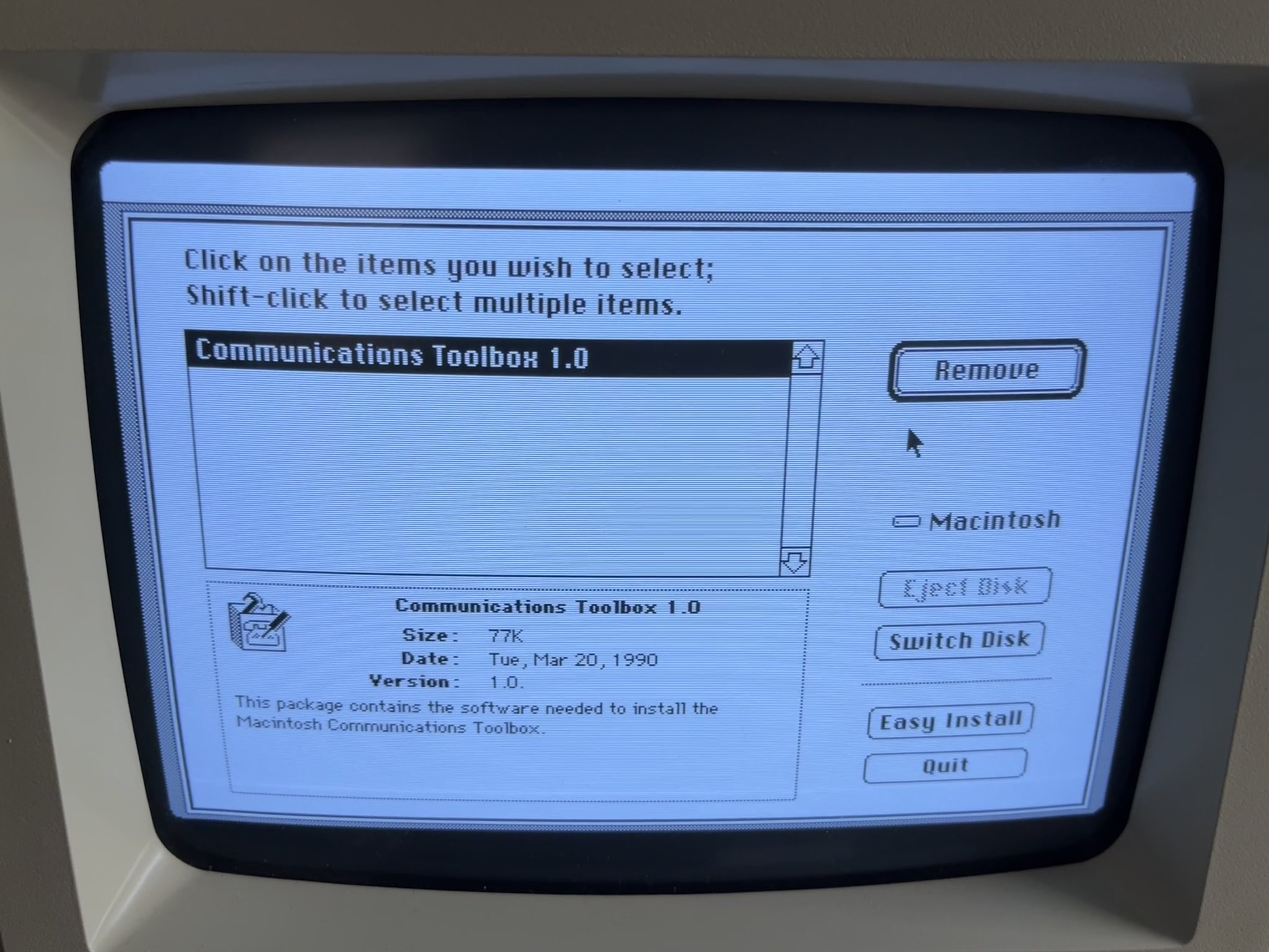 I installed some communications program on my Mac Plus a while ago and at every boot I'd get this extension showing up and a new "Communications Folder" in my System Folder even if I deleted it before rebooting. \