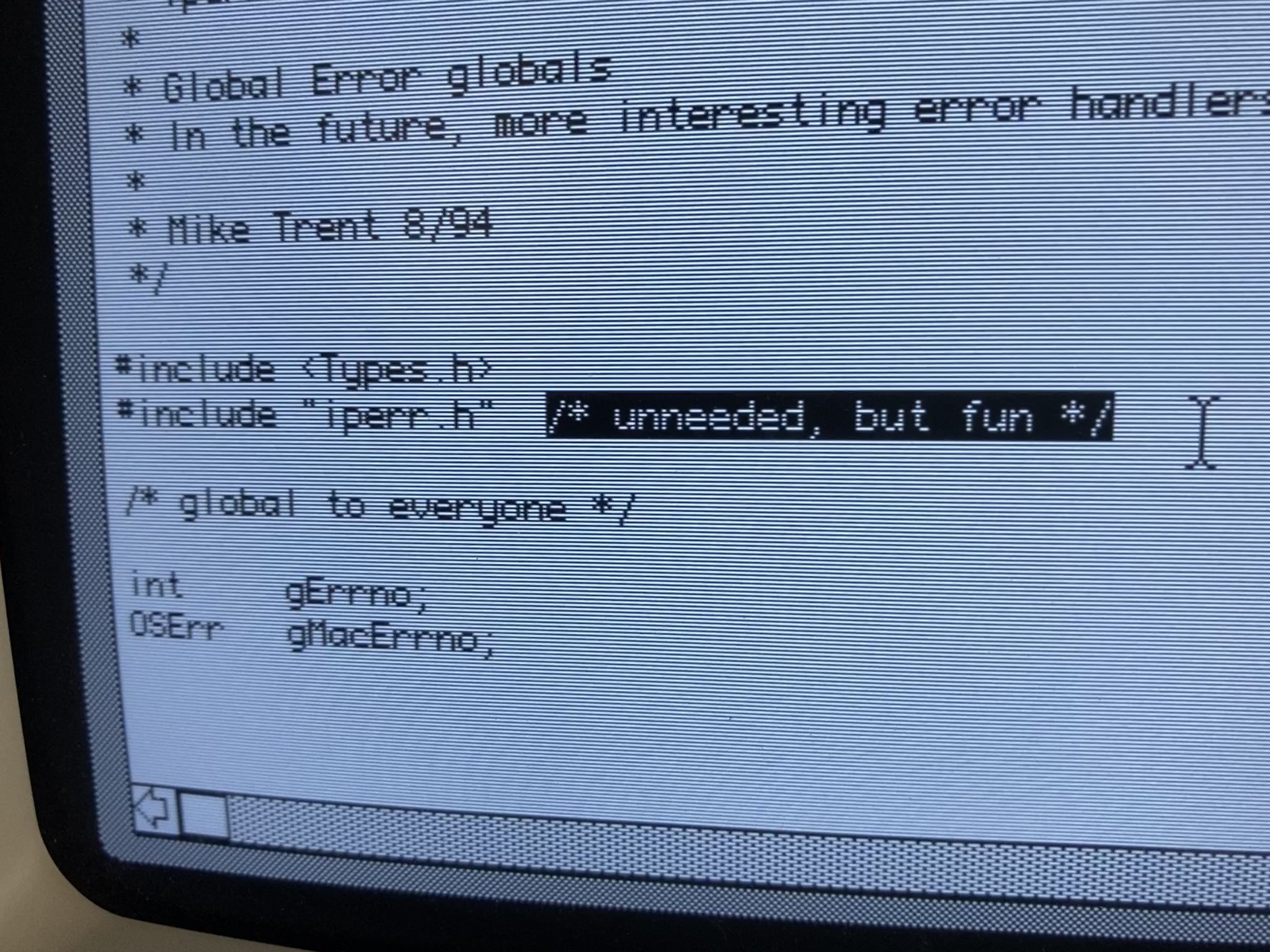 I've been learning the Macintosh Toolbox APIs for System 6 and couldn't figure out why some functions had short names like "DisposDialog" but others "ReallocHandle". Turns out Apple's Pascal compiler made routine names significant to only 8 chars, making long names collide.
